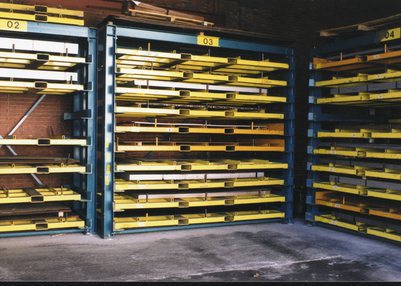 Et meget stabilt push-in pallemagasin for oppbevaring av hovedsakelig platemateriale.