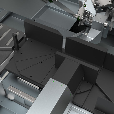 > Operatørfritt system: takket være den automatiske posisjoneringen av saghodet og skrustikkene samt den automatiske håndteringen av rest- og trimmesnitt, er sagmaskinens funksjon fullstendig automatisert, og minimerer dermed operatørens inngrep og innstillingstider.