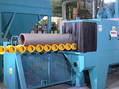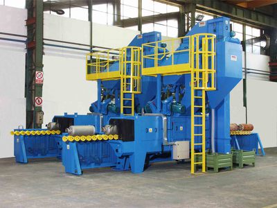Maskin for slyngrensing av overflaten på gassflasker og andre sylindriske deler. Slyngrensingen fjerner f.eks. oksidering, kalamin og maling ved f.eks. resirkulering av gassflasker. Delene roterer mens de flyttes fremover, med en spiralformet, kontinuerlig bevegelse. Dette bearbeider hele overflaten med skuddene som blir slynget mot delene gjennom maskinen, og gir et jevnt og godt